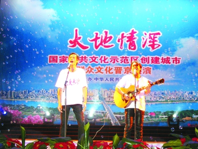 近日,由芙蓉區(qū)委宣傳部、芙蓉區(qū)文體新局主辦的“農(nóng)民工華旭組合演唱會(huì)”在長(zhǎng)沙市芙蓉區(qū)政府會(huì)議中心舉行。兩位主唱一回到后臺(tái),等候已久的粉絲便立即圍上去請(qǐng)他們簽名,與他們合影。主唱之一王成勇有些不好意思地說(shuō):“真是沒(méi)想到在長(zhǎng)沙找到了當(dāng)明星的感覺(jué)!”華旭組合的兩位演唱者都是在長(zhǎng)沙打工的外來(lái)務(wù)工人員。前年,兩人還只是在城市的角落落寞地唱著自己的歌。但是現(xiàn)在,他們已成為長(zhǎng)沙人喜愛(ài)的歌星。他們的身影出現(xiàn)在“長(zhǎng)沙市外來(lái)務(wù)工人員歌唱大賽”的現(xiàn)場(chǎng),出現(xiàn)在長(zhǎng)沙市春節(jié)聯(lián)歡晚會(huì)的舞臺(tái),出現(xiàn)在長(zhǎng)沙群文進(jìn)京文藝演出中。