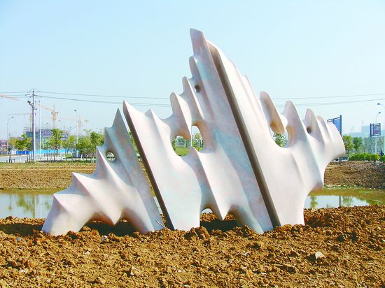 《風(fēng)馳》,以抽象的形態(tài)表現(xiàn)一只帶翼飛龍正在隨風(fēng)而起的形象,光潤的石材和多變的形體輪廓,給觀眾的視覺帶來豐富的感受。這是在由中國雕塑學(xué)會、中國美術(shù)學(xué)院與蕪湖市人民政府聯(lián)合主辦的首屆“劉開渠獎”國際雕塑大展暨蕪湖雕塑公園開園儀式上,意大利雕塑家吉歐·菲林獲金獎的作品。從11月27日起,《風(fēng)馳》將和來自全球40個國家和地區(qū)的521名藝術(shù)家的2017件投稿作品中遴選而出的66件作品一起,在安徽省蕪湖市占地3800畝的神山公園永久展出。