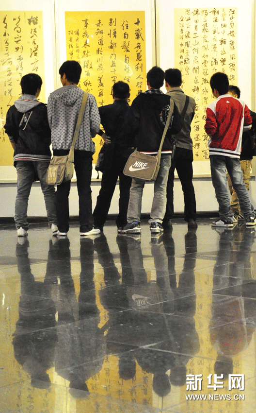 ??? (1)11月12日,觀眾在南寧舉行的全國第十屆書法篆刻作品展展廳參觀。