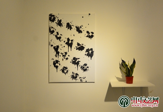 撥開迷霧中的布簾,步入側廳,呈現出另一番景象。植物和著瀝青在油畫布上盡情的涂畫,留下的的痕跡是盧征遠試圖去“遇見”的另外一個自己。
