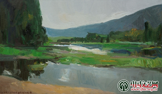 胡繼寧作品 春山新雨后·下姚80X138cm 亞麻油彩