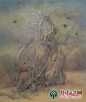 《雪汀蘆禽》圖軸 周望作品 絹本 水墨 220cmx200cm 2013年