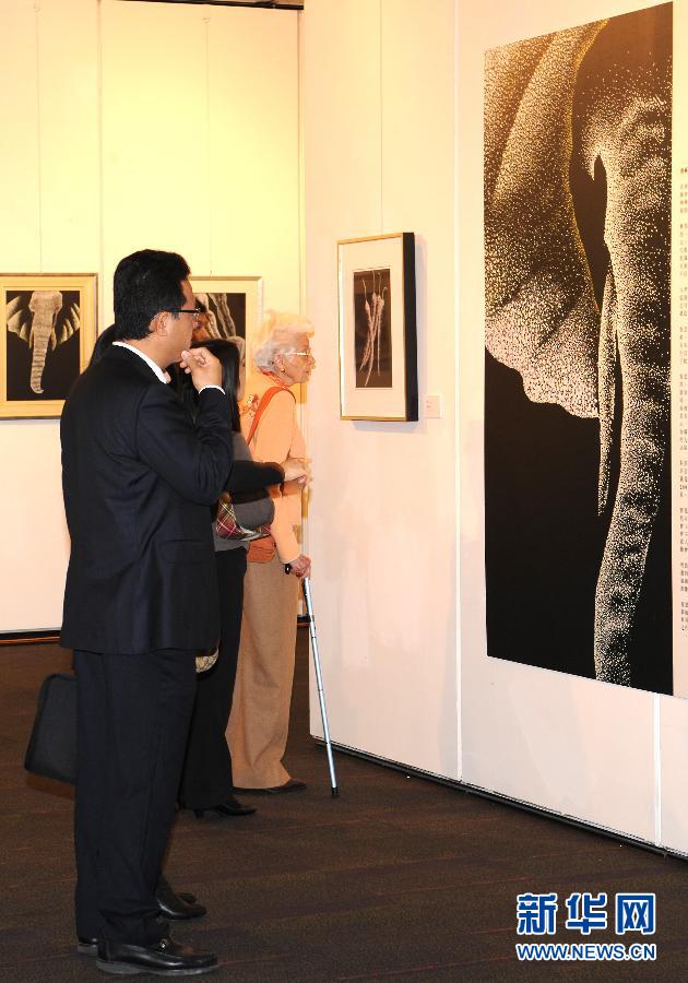 ??? 2月18日,參觀者在“陳氏三代藝術(shù)展”上欣賞作品。當(dāng)日,“陳氏三代藝術(shù)展”在香港大會(huì)堂展覽廳揭幕。展出全國歸國華僑聯(lián)合會(huì)副主席陳友慶夫人陳沈時(shí)芬、次子陳智思和長孫女陳曉鈴三代藝術(shù)家的作品。(新華社記者 黃本強(qiáng) 攝)