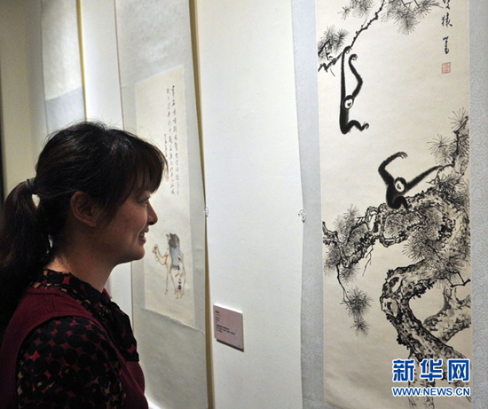 5月10日,觀眾欣賞溥心畬的《松影雙猿》畫作