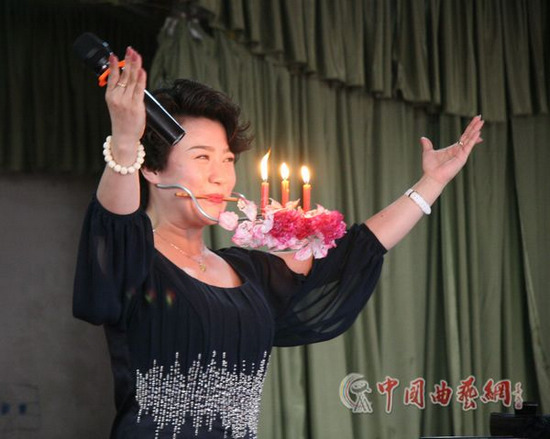 楊菲的含燈大鼓首先登場(chǎng),面對(duì)著蠟燭上燃起的火苗,孩子們欣喜地叫道:“我們的生日蛋糕也點(diǎn)這樣的蠟燭。”常貴田抓住這現(xiàn)場(chǎng)的“小包袱”和首次搭檔的趙炎即興發(fā)揮了相聲小段,逗得孩子們捧腹大笑。籍薇、種玉杰等演員也紛紛登場(chǎng),亮出了梅花大鼓、京韻大鼓等名段。