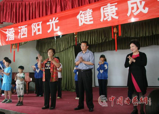 最后,曲華江、籍薇、“太陽村”的張淑琴主任和老師孩子們的手語聯(lián)唱把現(xiàn)場(chǎng)氣氛推到了高潮,孩子們?cè)谶@個(gè)溫暖的大家庭里提前迎來了他們自己快樂的節(jié)日。
