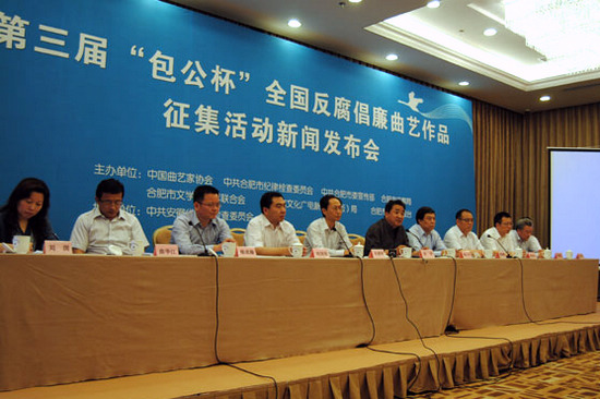 6月10日,由中國曲藝家協會、中共合肥市紀律檢查委員會、中共合肥市委宣傳部、合肥市監察局、合肥市文聯、合肥市文化廣電新聞(出版)局、合肥市廣播電視臺等單位共同主辦的第三屆“包公杯”全國反腐倡廉曲藝作品征集活動在京正式啟動。