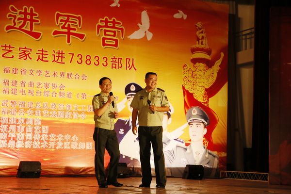 7月24日晚,為慶祝中國人民解放軍建軍86周年,由福建省文聯(lián)組織的“歡笑進軍營”專場曲藝晚會,在駐榕某部隊舉行。整場晚會南北曲藝品種、各門類藝術(shù)形式交相暉映,現(xiàn)場歡聲、掌聲不斷,80多位藝術(shù)家與400多名部隊官兵共敘魚水情誼,為最可愛的人送上“八一”節(jié)的誠摯祝福。