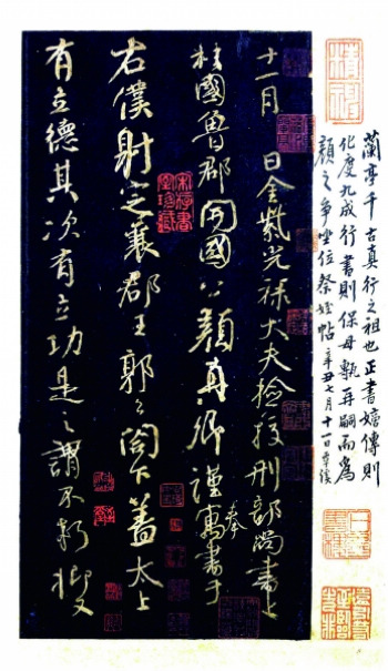 顏真卿的行書在師法張旭的基礎上融入篆籀筆法,圓轉遒勁,在“二王”之外別樹新風,歷來受到書史的推崇,幾無異議。而《爭座位帖》是顏氏行書中的杰作,與《祭侄文稿》一樣,無意于書而筆下龍蛇隨胸中波瀾奔涌而出,爛然成篇,字字珠璣。蘇東坡說此帖“比公他書尤為奇特,信手自然,動有姿態,乃知瓦注賢于黃金,雖公猶未免也。”連對顏書頗有微詞的米芾也認為:“此帖在顏最為杰思,想其忠義憤發,頓挫郁屈,意不在字,天真罄露,在于此書。”二人的評論均看重此帖出于自然,不假修飾。作者在激憤的情緒驅動下奮筆疾書,且是草稿之作,絕不會刻意去安排點畫章法、姿態布局,并且肆意涂改,滿紙狼藉,然而恰在這不經意之間,正是書家功力最真實的體現。清代書法理論家阮元的形容最為貼切:“《爭座位帖》如熔金出冶,隨地流走,元氣渾然,不復以姿媚為念者,其品乃高,所以此帖為行書之極。”
