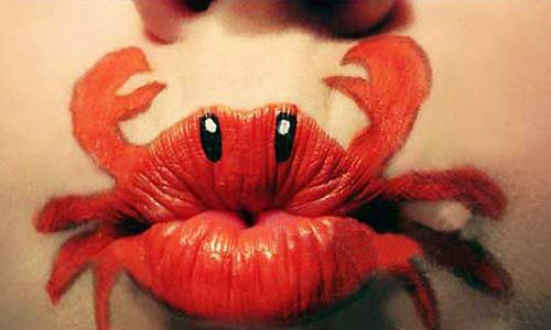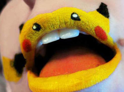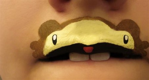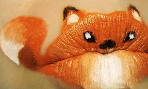 把可愛的動物圖案化妝到女孩性感嘴唇上,既性感又好玩還可愛,這很有想象力的做法,看起來是個一個好主意。皮卡丘、小螃蟹,大河馬,還有漂亮的火狐貍。它們都是在嘴巴上畫出來的!哈,這也太囧了吧?