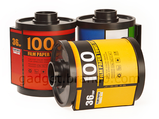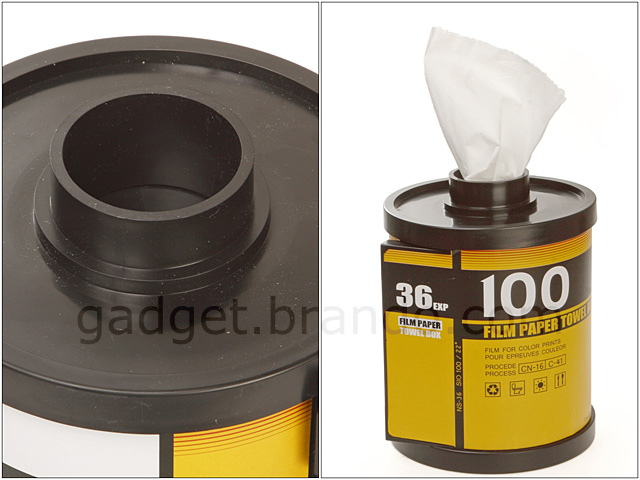 這是一款做成膠卷形狀的廁紙盒。使用時可以放在桌上,從上方抽紙;也可以固定在墻上,將紙如膠片一樣從側面抽出。非常適合攝影宅,自用送禮兩相宜。