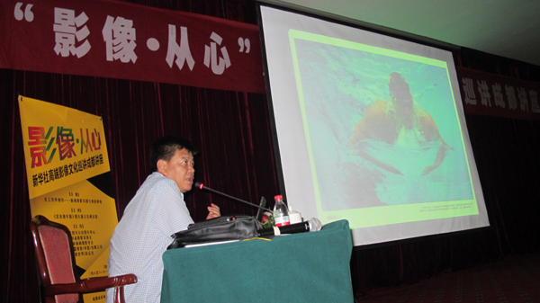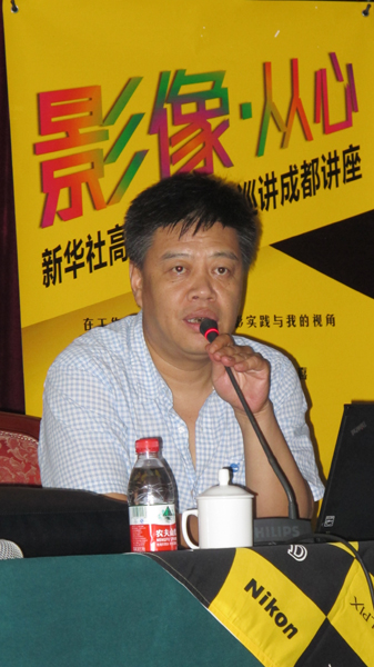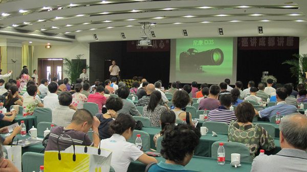 ???7月16日下午,由《攝影世界》雜志、尼康映像儀器銷售(中國)有限公司主辦,新華社四川分社圖片中心、四川省攝影家協會協辦的“影像 從心”---新華社高端攝影文化講座在成都太成賓館10樓會議廳舉行。此次巡講是繼珠海、杭州、大連后的第四站,主講人北京青年報圖片部主任、北京新聞攝影學會副主席胡金喜用一幅幅生動的新聞照片,講述了自己如何在工作中進行創作。此次講座吸引了200多名攝影愛好者和雜志的忠實讀者參與,現場氣氛活躍,并在會后與胡金喜進行了現場問答互動,共同探討新聞攝影的拍攝。