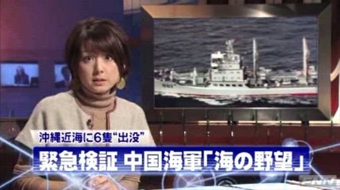 根據電視截圖,節目主要內容除了介紹此次中國海軍艦隊此次穿越活動外,還請日本當地“軍事評論家”介紹了中國海軍的主要情況,不但一一分析了此次穿越沖繩的海軍艦艇功能,還播放了正在大連改裝的瓦良格號航母實驗平臺的影像。節目中收集大量中國船只在海上的活動并和日本發生沖突的影像,其中包括中國漁船與日本海上保安廳保安艦相撞的視頻影像。