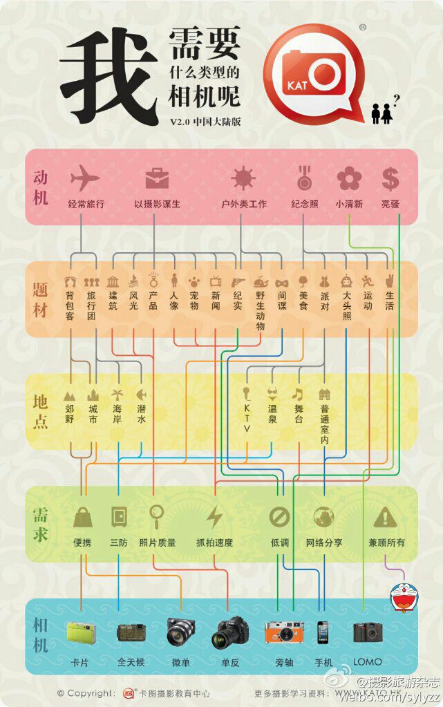 相機的種類千奇百怪,很多攝影初學者都不知道自己到底需要哪種類型的相機,不知道哪種相機是最適合自己的需求的,更不知道該如何選購了。現(xiàn)在,我們特意制作了2.0版的相機選購路線圖《我需要什么類型的相機呢?》,您只需要根據(jù)自己的情況,往下走下去,就會找到答案啦!