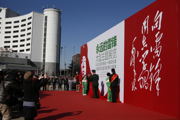 3月4日上午10點,“永遠的雷鋒”大型主題展覽在中華世紀壇南廣場舉行開幕式,雷鋒生前戰友喬安山、身邊雷鋒標兵代表厲莉和北京雷鋒小學學生共同為展覽揭幕。