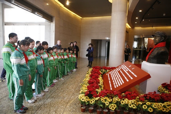 雷鋒生前戰友喬安山、身邊雷鋒標兵代表厲莉和北京雷鋒小學學生共同為展覽揭幕。