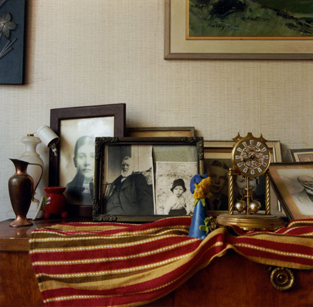 在彼得·德·魯拍攝的《Sven》這本圖錄中,給人印象最深刻的,莫過(guò)于桌面上擺放的那些照 片,一張拍攝照片的照片。我們發(fā)現(xiàn)這些照片都很老舊,從早期肖像到典型的五、十年代合影,但是看不到之后的新照。時(shí)間就停留在那個(gè)時(shí)候,雖然桌上有一只鐘表,但時(shí)間確實(shí)是停留下來(lái)了。照片將時(shí)間凝固下來(lái),而凝固的時(shí)間也在這張照片中成為獨(dú)立于時(shí)間之外的存在。