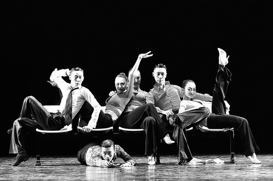 而另一個群舞作品《地鐵四號線》運用摩登舞語匯進行創編。北京的地鐵4號線就從北京舞院的門口經過,學生進進出出經常乘坐這趟地鐵,作品表現了現代都市人在每天乘坐的地鐵里發生的故事。這個作品充分運用了摩登舞中快步的元素,來表現在地鐵里快節奏的人群,上車下車、擁擠、搶座等一系列生活場景,感受著快節奏生活帶來的樂趣。因它貼近我們每個人的生活,學生跳這個舞蹈時,就像在演繹他們自己的日常生活,既有生活氣息又有時代感。