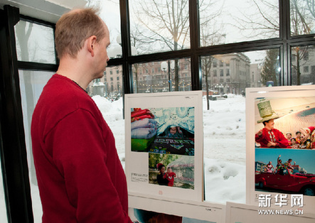 12月22日,參觀者在斯德哥爾摩國王花園影廊欣賞“大美新疆”攝影展圖片。新華網圖片 劉一楠 攝