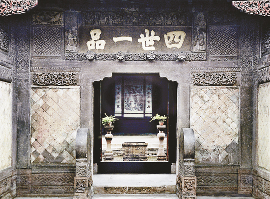 我從北門進來,這是一座儀仗廳,朝南伸出一條直道,連向盡處的石雕牌樓。中間筑起幾道石門,也有講究,不是“禮門”就是“義路”,一個額鐫“曳履星辰”,一個額鐫“依光日月”,擘窠書,敷金,筆勢沉雄,寓意深焉。日月星,“三光”是也。按莊子所說:“上法圓天,以順三光,下法方地,以順四時,中和民意,以安四鄉?!弊x匾,我不免由日月星而想到君臣民。這樣的匾額還有多塊,懸在院子各處,“柱國少保”、“清朝師柱”等等,都是。目對榜書,我的興趣不在敕封的榮耀上,而如看古人寫碑,領受那種不凡的筆力。