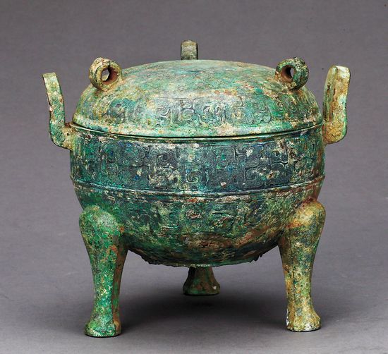 這件青銅鼎周身及器蓋布滿卷曲的蟠螭紋樣。蟠螭,是一種沒有角的早期龍。關于螭的說法,有說是“龍子”,有說是“雌龍”,還有說是“山神”。龍在這個時期確實概念模糊,難以在古文物的形象上證實。此鼎在展現戰國時期青銅器鑄造高超水平的同時,充分展示了龍紋初創時期的抽象之美。