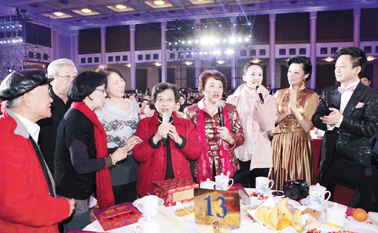 “鮮紅的太陽給我生命的光輝,我飽含熱淚一生一世與你相隨”,聯歡會在宋祖英演唱的《中國萬歲》中被推向高潮。動情的歌聲唱出了中華兒女心中的眷戀與熱愛。整臺晚會老歌新曲動人心弦;臺上臺下真情交融;前輩藝術家與后起之秀濟濟一堂,共同表達著對偉大祖國的深深祝福和對龍年盛世的美好祈愿。