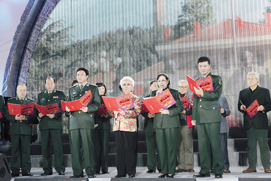 “燕趙太平頌”以吳橋雜技和壩上吹打這兩朵河北藝術的奇葩先聲奪人,為觀眾呈現出色彩繽紛、令人眼花繚亂的藝術場面。抖空竹、登壇子、戴草帽、轉碟、近景魔術等等,各種雜技技術技巧的奇難巧美,贏得了觀眾一次次的喝彩。歌劇《白毛女》、河北民歌《放風箏》《小放?!贰⑼ㄋ籽莩痘啬锛摇罚约霸u劇《劉巧兒》選段,都仿佛散發著泥土的芬芳,質樸的氣息撲面而來。河北籍作家王蒙的小說《青春萬歲》承載了幾代人青春的理想和追求,張鐵林飽含深情地朗誦了小說中的詩歌《所有的日子都來吧》,令人不禁要贊美青春,贊美這朝氣蓬勃、欣欣向榮的偉大時代。合唱《沒有共產黨就沒有新中國》無疑表達了全國各族兒女真摯的深情與心聲。燕趙大地物華天寶,人杰地靈。不僅孕育了吳橋雜技、評劇、河北梆子等藝術形式,哺育了許許多多優秀的人才和慷慨悲歌之士,這方神奇的土地上,更有著光榮的革命歷史傳統。西柏坡,這個靜靜的村莊曾經是解放戰爭時期黨中央指揮戰略決戰的指揮所,也是共產黨“進京趕考”前的最后一站。“我們的大地為什么百花盛開”,“我們知道從哪里來,到哪里去”,“從人民中來,到人民中去”,王曉棠、田華等八一廠電影演員們激情充沛地朗誦了《西柏坡抒懷》這首飽含深意和哲理的詩歌,呂思清的小提琴、孫穎迪的鋼琴伴奏,則為這首大氣的詩歌送上優美和諧的旋律,與詩朗誦珠聯璧合、相得益彰,令人在抒懷回眸中暢想與深思。