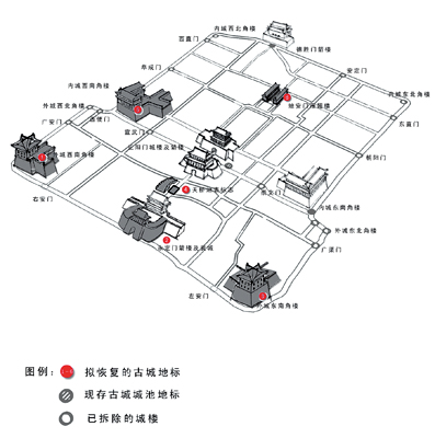 北京“歷史名城標志性建筑重建項目”示意圖