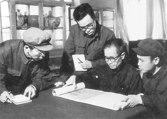 1978年10月,徐邦達與學生們在青島博物館鑒定書畫。自左至右:楊臣彬、肖燕翼、徐邦達、楊新