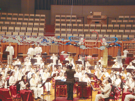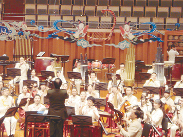 風鈴鳴響、絲竹悠悠、戰馬嘶鳴、集市喧鬧、樂舞婀娜……在如泣如訴的樂聲中,千年敦煌向我們走來。3月4日晚,國家大劇院音樂廳,大型民族交響樂《敦煌音畫》在身兼作曲重任的指揮家景建樹指揮下,由甘肅省歌舞劇院民族管弦樂團和西安音樂學院民族管弦樂團的百余名優秀演奏員成功首演,部分出席全國兩會的代表、委員與首都觀眾一起觀看了演出。7個樂章之間在意境、風格、力度、音色、速度等方面錯落有致、有張有弛、各具特色,但整部作品風格協調,渾然一體。70多分鐘的演出結束后觀眾報以長時間的掌聲,兩度返場之后,《敦煌音畫》的曲作者趙季平、景建樹、韓蘭魁、張堅被請上了舞臺。這次的創作過程寫滿了他們的感悟和思考。