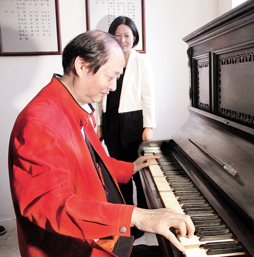 5月9日,著名音樂家趙季平在魯藝舊址體驗當年的鋼琴