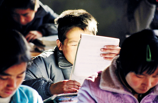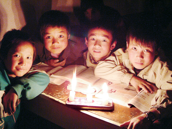 馬奇、李淵昌、張鑫、李勇,這是關(guān)橋中學(xué)初一(3)班的四個孩子停電上晚自修的情景。搖曳的燈光映著渴望的眼神,我們似乎可以洞悉他們的內(nèi)心,單純、質(zhì)樸,充滿希望。