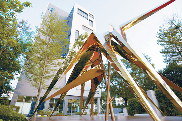 文樓的雕塑作品《風(fēng)和氣逸》與香港浸會(huì)大學(xué)建筑相得益彰(資料圖片)