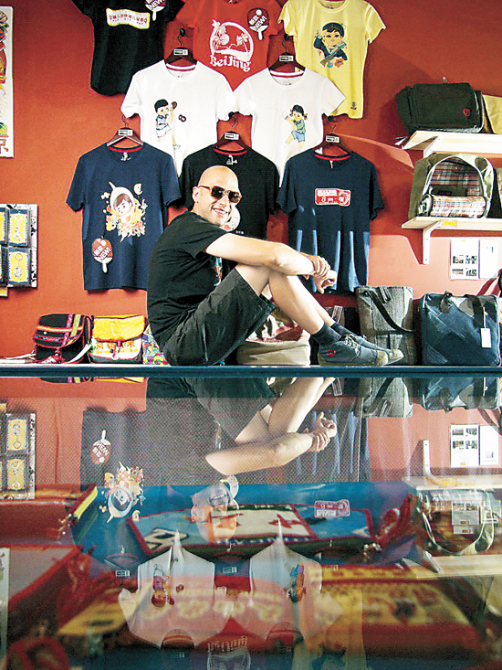 在“比基尼美女登上長城”后,老江的創意便一發不可收拾,他把自己喜歡的元素統統搬上了T恤。老江喜歡逛舊貨市場,只買那些便宜好玩的東西,“我很喜歡那些舊東西,有的老外去舊貨市場喜歡淘一些假瓷器,我就不愛什么青花瓷,就喜歡有兩只金魚的那種瓷臉盆,我會買回家當收藏品,然后把這些我喜歡的收藏品作為元素印在T恤上”。聊起舊物,才發現他的記憶力真是好到不行,這些年北京有過的老物件他都記在心里:票根、瓷缸子、老北京出租車的1.2元價標……這些已經熟悉得快被我們遺忘的東西,卻是老江眼中獨特的北京文化符號,起初,老江的創意只是簡單地將這些符號呈現在T恤上,隨著這幾年的發展,老江的創意越來越成熟和豐富,不僅與設計師合作,在服裝的樣式上有所突破,更在創意上玩起了時髦元素和復古元素的穿越混搭。老江心里清楚要想做個常勝將軍,就得不斷創新:“你想出了一個好點子,被別人模仿是難免的。我經常會給自己一些壓力,讓自己想出新點子,不管有多么瘋狂,我都要試試。”