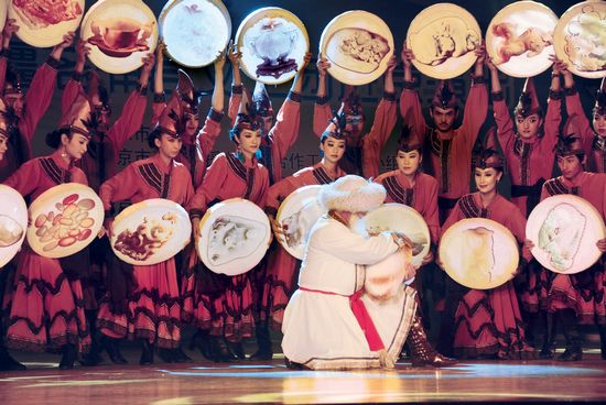 演出當晚,家鄉的“塔什古麗的傳說”成為導演古麗娜·塔衣爾創作靈感的重要來源,一場集體舞《塔什古麗的傳說》拉開了序幕,動聽的樂曲、優美的舞蹈,仿佛將人們帶到了美麗的新疆。維吾爾族姑娘小伙擅長載歌載舞自不必說,而突出民族性、古典美及原生態則是本臺晚會最大的特色,演出中,類似二人轉這種即興自編自唱的雙人歌舞來帕爾是和田民間藝術中的珍品,和田地區流傳下來的唯一具有代表性的古代樂器巴拉曼合奏已很少有人能夠表演,以1984年在洛浦縣賽依瓦克村1號漢墓出土的一塊葉紋栽絨毯為藍本的女子集體舞成為絲綢之路的繁盛再現……所有這些,都令觀眾在大開眼界、大飽眼福之余,對于新疆民族文化有了更深的了解,而這也是此次創作的初衷。古麗娜·塔衣爾認為,最值得推介的節目當屬集體舞《洛浦麥西來甫》和《長壽鄉的烤包子》——麥西來甫是舞蹈、各種民間娛樂和風俗相結合的一種歌舞形式,包括樂曲舞蹈和娛樂游戲,“這種男女彈唱歌吟的活動在新疆庫車、吐魯番的千佛洞壁畫中均有反映”;“洛浦的烤包子很有名的!”樂曲取自洛浦鄉村,旋律優美、節奏歡快,舞蹈熱情奔放,表現了洛浦人民生活在和諧、穩定、幸福家園的歡樂場景。