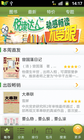 在手機閱讀基地看來,電子書、傳統書籍等都有著各自的優勢與劣勢,傳統圖書方便做筆記,適合深度閱讀,翻閱起來有真實感,容易保存,一些優秀的作品還具有收藏價值。但是傳統圖書的出版鏈條較長,從策劃到上市最少要三個月;傳播推廣的難度較大;對環境的影響大,不但消耗樹木,而且生產過程有污染。電子書攜帶方便,可以節省印刷、倉儲、物料、銷售等成本,環保,信息量大。目前電子書最大的問題是盜版,另外,閱讀電子書沒有閱讀傳統圖書的愉悅感,容易給人造成視覺疲勞和心理疲勞。今后,手機閱讀基地還將更進一步優化閱讀界面,帶給讀者更愉悅持久的閱讀體驗。而任何一個作品傳播者,無不希望自己所使用、傳播的作品為一手原創。對于今后如何吸取傳統閱讀的優勢,改變手機閱讀在讀者心目中“淺閱讀”的印象,鼓勵更多作者提供原創作品,手機閱讀基地版權方面負責人表示,手機閱讀的作品包括出版書、原創書、雜志、漫畫、聽書、圖片,其中原創內容約占50%。手機閱讀基地針對出版新書引入內容首發機制,積極鼓勵內容合作伙伴在手機閱讀平臺進行首發,2011年共首發出版書133本,原創書94本。手機閱讀有專門的原創頻道,設立了原創排行榜,還推出了原創版WAP頁面,經常閱讀原創內容的讀者登錄手機閱讀WAP頁面系統將自動定位到原創版。