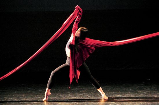 雕塑家任舞臺演出的服裝設計師?這是完全可能的。現(xiàn)代舞《舞與線循環(huán)空間軟雕塑——藝術裝置與身體》,就是由舞蹈家施曉娟和波蘭雕塑家合作完成的。在這部作品中,有很多條線出現(xiàn)在舞臺空間里,施曉娟在一根紅色的線里舞蹈,她本人成為整個裝置作品的一部分。
