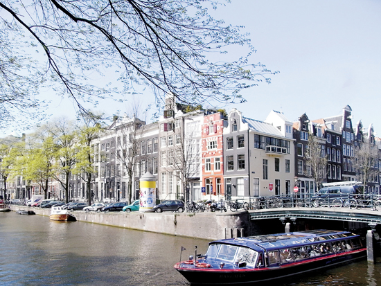 阿姆斯特丹的城市規(guī)劃巧妙利用了運河穿插鬧市的地理特點,船舶作為重要的交通工具,不僅為貨物運輸提供了便利,游客也可以享受到獨具特色的船屋旅館。為了便于不同高度的船舶通行,很多架于運河上的橋都是電動的,可以升高,甚至收縮。