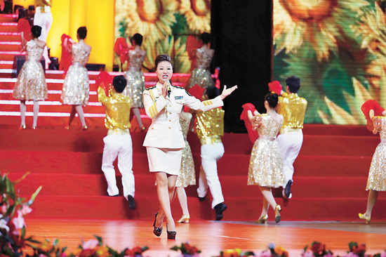 王麗達領唱全體演員合唱《向著太陽歌唱》