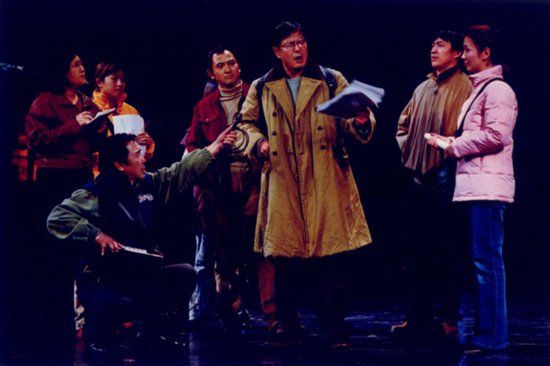 “落馬湖荒原上走來了一群拓荒者,他們沒有愛的權利……”這是寫在《荒原與人》開頭的話。《荒原與人》寫于1985年,講述了一群知青在黑土地上的殘酷青春。該劇一經發表便引起巨大反響,曾榮獲1988年曹禺戲劇文學獎,1989年獲新中國成立40周年榮譽獎。雖然被眾多大導演看中,但這部《荒原與人》自從問世就被戲劇評論界預言為“首演一定會失敗”,因為它在敘事結構上打破了傳統的寫法,時空的變換相當頻繁,大段大段的內心獨白,在舞臺上很難表現。1987年,時任中央戲劇學院院長的徐曉鐘曾帶著鞏俐、伍宇娟這班表演系的學生到北大荒體驗生活,而且分配了角色,原定1989年上演,后來因種種原因流產。此后,北京人藝在林兆華導演的帶領下,導演任鳴和編劇李龍云等也到東北體驗生活,但依然沒有成功上演。2006年,該戲再度上馬,由國話副院長、著名導演王曉鷹親自擔任導演,親自點兵完整排演,這次演出亦令作者李龍云深感滿意。