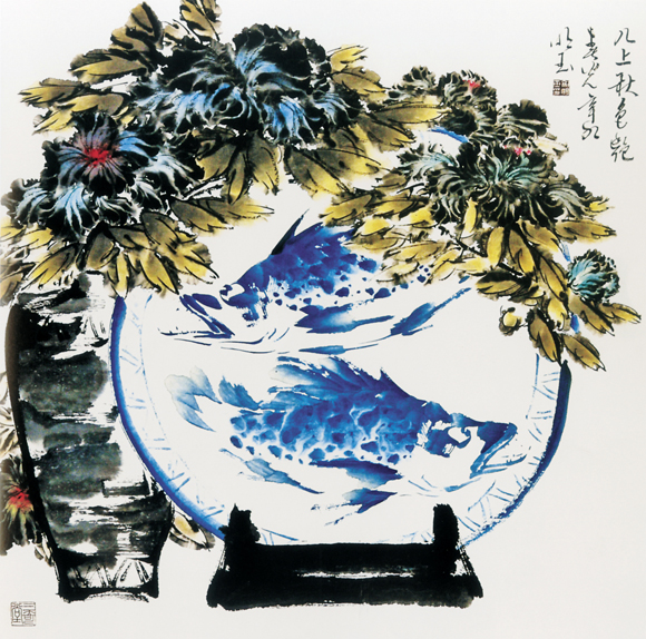 初明玉水墨畫除了題材選擇的成功外,還有文化蘊(yùn)涵上的成功。一直生活在遼寧丹東的初明玉,任丹東社科聯(lián)主席、《丹東社會(huì)科學(xué)》雜志主編。而丹東是一個(gè)有海、有河,鱖魚十分豐富的地方,他主攻花鳥畫中的鱖魚,融進(jìn)了丹東的水族文化、生態(tài)文化、飲食文化,用國(guó)畫從鱖魚的角度表現(xiàn)了丹東;同時(shí),“鱖”音同“貴”,初明玉將鱖魚和珊瑚及菊花、牡丹、荷花等許多植物放在一起,表達(dá)并弘揚(yáng)中國(guó)傳統(tǒng)文化關(guān)于富貴、美好、吉祥的祝福文化心理。而從畫藝上看,專家認(rèn)為,初明玉筆墨的優(yōu)點(diǎn)是豪放、流暢、大氣,敢于創(chuàng)新,有著狂野的風(fēng)格特色,缺點(diǎn)是缺少專業(yè)畫家應(yīng)有的成熟、節(jié)制、內(nèi)斂、簡(jiǎn)潔,同時(shí)鱖魚造型上比較單調(diào),嘴巴張開的造型太多,過(guò)于雷同,用色上有些畫有高貴的氣質(zhì),有些畫卻流于商業(yè)化的俗氣。