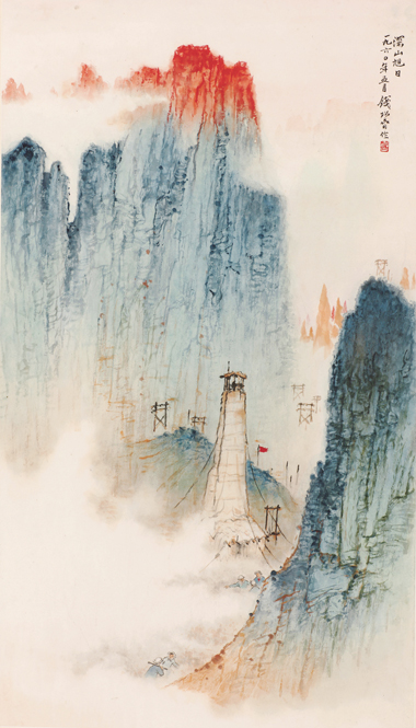 錢松喦的筆墨顯得要規整、細致些。從20世紀60年代描繪山河新貌時,就已用波磔起伏的筆線表現層層的山石、遒勁的枝干,房屋田野、舟橋公路以及吊車、鐵塔、電線桿諸多景物皆融入自己的筆意里,可以說西方的透視法為山水畫提供了審視空間的新角度,讓空間表現貼近視覺真實。對此,山水畫家一方面表現出適當采納的態度:“畫小品可以交代透視,透視對你有幫助,何必放棄”;“能表現畫面深度和層次的那些斜的透視線一定抓住不放,它能使畫面深遠過去,縱深線是構圖的生命線”;“山水畫家懂一點透視學,我認為也是需要的,山水畫中屋宇樓閣與建筑物的處理,適當地運用透視學的畫法”。另一方面表現出恰當疏離的態度:“畫不是透視的說明,看得過去就行了,不要過死地要求透視”;“表現大的場面,畫千巖萬壑,便不要被透視局限住”;“如果用幾何透視學的原理去解決一棵樹的透視變化,那可能是極其復雜的”;“山水畫的‘咫尺千里’也不是單純靠幾何透視規律所能解決的”。