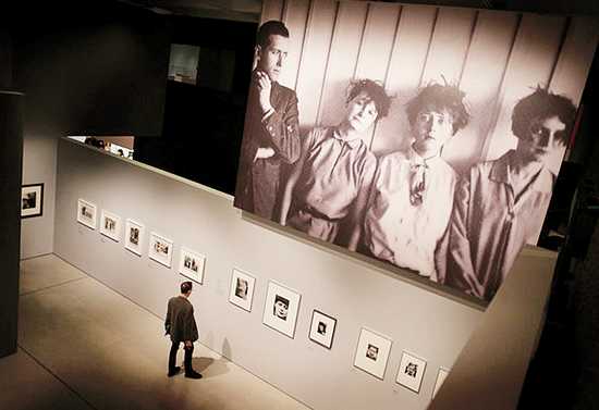 展廳內的巨幅攝影作品:設計了第一把鋼管椅的馬歇布勞耶與學生們的合影