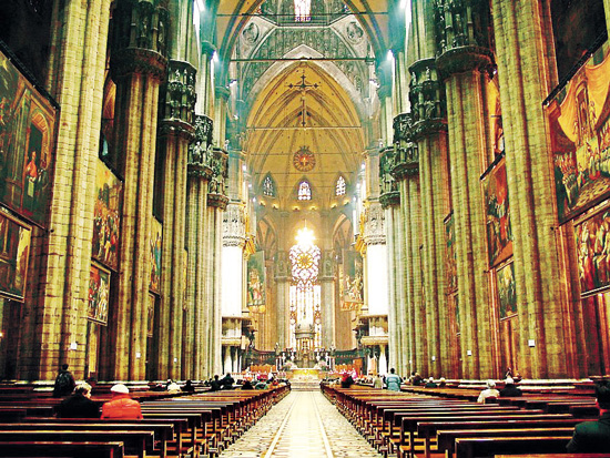 和諧與對(duì)稱是緊密地聯(lián)系起來的,在米蘭大教堂里,處處體現(xiàn)了“建筑是凝固的音樂”。