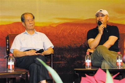 《白鹿原》出版二十周年慶典會上,陳忠實(左)與王全安對談。