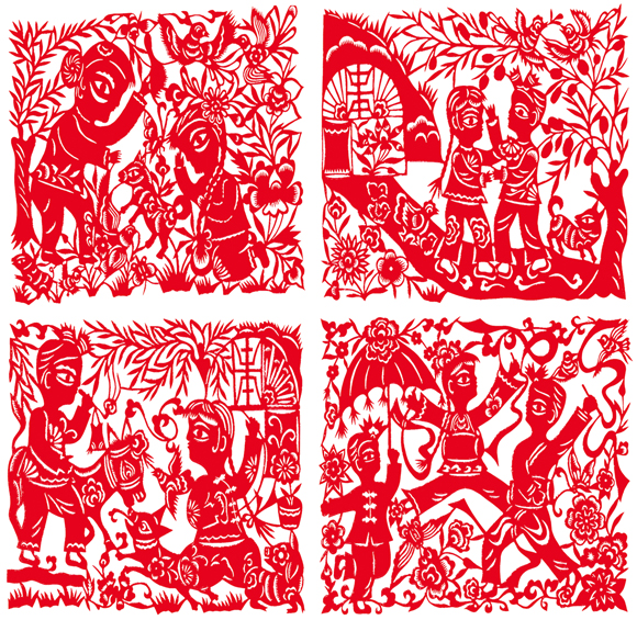 剪紙藝術經國務院批準列入第一批國家級非物質文化遺產名錄,因其材料易得、成本低廉、效果立見、適應面廣、樣式千姿百態、形象普遍生動而受歡迎,在全國各地形成了不同的地方風格流派。