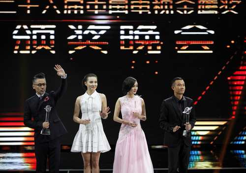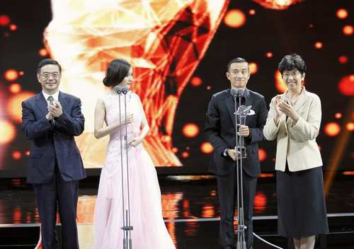 中國(guó)文聯(lián)黨組書(shū)記、副主席趙實(shí),湖南省委書(shū)記、湖南省人大常委會(huì)主任周強(qiáng)為獲獎(jiǎng)演員 文章、楊冪頒獎(jiǎng)