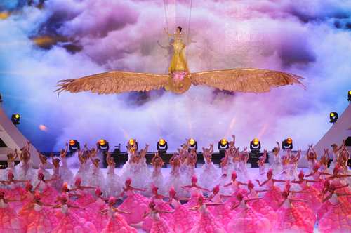晚會(huì)當(dāng)天還有李宇春、雷佳、高圓圓等觀眾喜愛(ài)的明星帶來(lái)精彩表演,在蔡國(guó)慶等演唱的《我為你喝彩》的歌聲中,開(kāi)幕式緩緩落下帷幕。