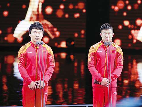 頒獎(jiǎng)嘉賓奧運(yùn)健兒馮哲、陳一冰發(fā)表頒獎(jiǎng)前言