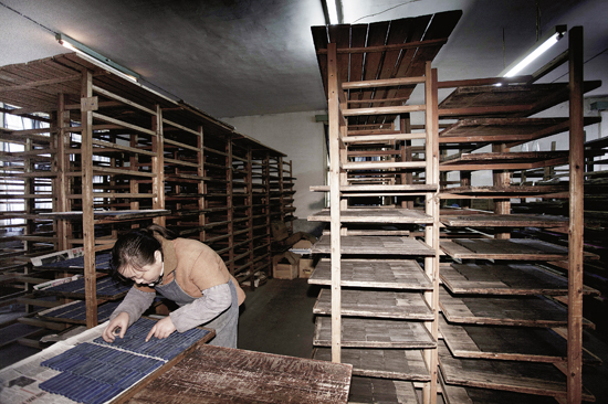 晾墨場(chǎng)要求保持恒溫恒濕,避免陽(yáng)光照射,晾墨要勤翻,以防墨坯收縮不勻而變形